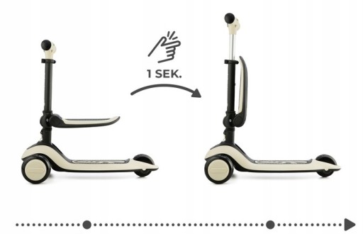 - Siedzisko można łatwo podnieść i złożyć równolegle do kierownicy: nie tylko w domu, ale też podczas spaceru