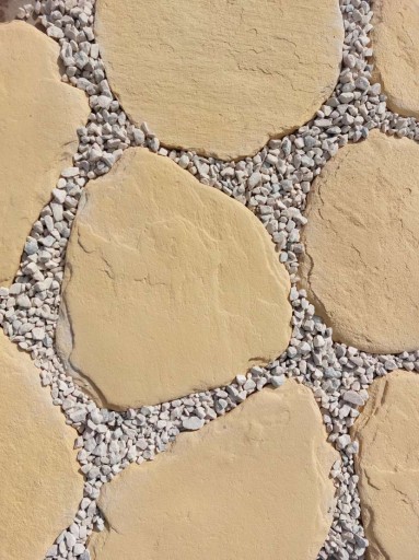 Kamień Łupany Ścieżkowiec 30-45 cm w kolorze piaskowym. Aukcja dotyczy płyty deptakowej. Cena za paletę 96 szt.