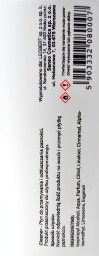 Cleaner jest preparatem, który odtłuszcza i dezynfekuje płytkę paznokcia zapewniając długotrwałość lakieru hybrydowego. Co więcej produkt ten usunie lepką warstwę dyspersyjną ostatniej warstwy stylizacji.
