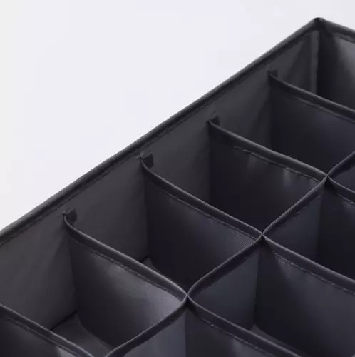 - ZESTAW 4 ORGANIZATORÓW – zestaw zawiera łącznie 4 organizery, z których każdy może być używany do przechowywania innej bielizny. Jedna będzie pasować do skarpet, druga do biustonoszy, a trzecia do majtek lub krawatów. Każdy z organizatorów z pewnością zostanie wykorzystany we właściwy sposób.