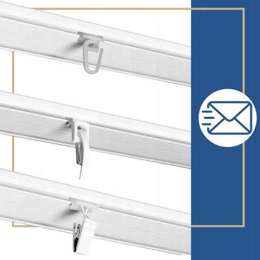 - Żabka z suwakiem / agrafka z suwakiem / agrafka francuska - 52 sztuki przypada na 260cm szyny sufitowej 2-torowej,należy wybrać rodzaj upięcia po zakupie,przy braku informacji zapakujemy agrafki.