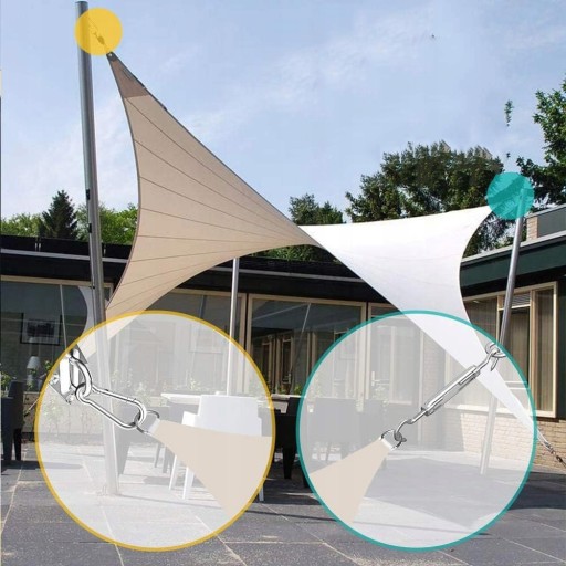 Wysoka nośność, wytrzymałość i odporność na korozję. Łatwy w użyciu i pasuje do większości typów żagli zacieniających. Może być stosowany na zewnątrz na tarasach, ogrodach, drzewach, ścianach, gankach, podwórkach, kawiarniach i altanach.