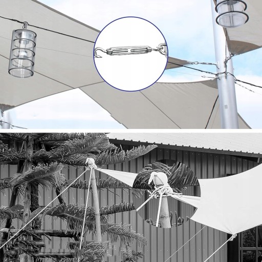 🔗 Dobry pomocnik na zewnątrz: Zestaw okuć do żagli zacieniających jest wykonany z wysokiej jakości stali nierdzewnej 304. Duża nośność, trwałość i dobra odporność na korozję. Łatwy w instalacji i obsłudze, odpowiedni do większości typów żagli zacieniających.