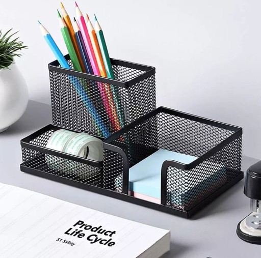 Niezbędne akcesoria biurowe, które potrafią się zagubić na biurku, to już przeszłość dzięki naszemu solidnemu i trwałemu organizerowi na biurko.
