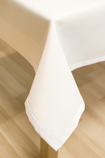 Gruby, gastronomiczny obrus plamoodporny o wykończeniu profesjonalnym na zakładkę (około 2 cm) z wykończeniem na prosto.