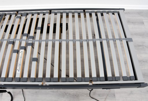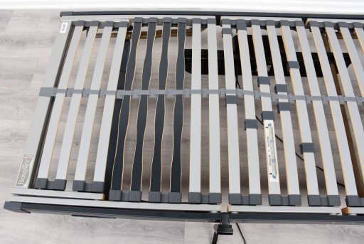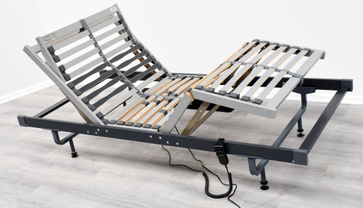 Stelaż, pochodzenie Niemcy, wykonany ze stabilnym i elastycznych raszek dostosowujących się do obciążenia, w zestawie pilot regulujący różne wysokość, podnoszenie osobno część głowy, osobno część nóg, 100% sprawny, posiada długi kabel około 3 metrów