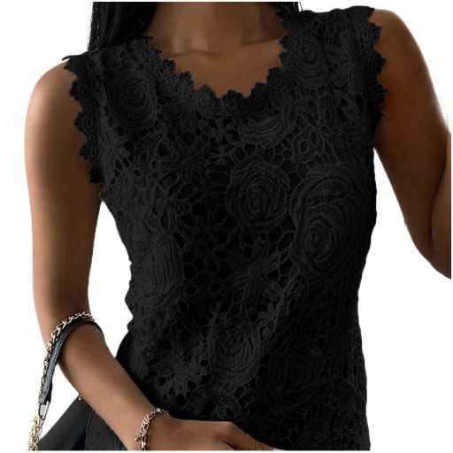 ELEGANCKA DAMSKA BLUZKA KORONKOWA NA RAMIĄCZKACH