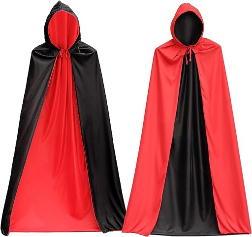 Dwustronny Design: Nasza peleryna ma dwie strony - jedna czarna, druga czerwona, co pozwala Ci dostosować swój wygląd do nastroju i okazji.
