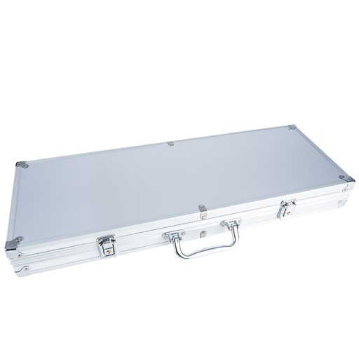 - ALUMINIOWA WALIZKA – zestaw pokera zapakowany jest w bardzo wytrzymałą walizkę, wykonaną z aluminium. Posiada ergonomiczną rączkę, która umożliwia wygodne przenoszenie i transport.