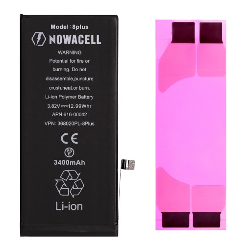 Bateria NOWACELL® to idealne rozwiązanie dla Twojego iPhone 8 Plus . Dzięki pojemności 3400 mAh, jedno ładowanie wystarczy na dłużej. Fabrycznie nowa bateria została wyprodukowana w ultranowoczesnej fabryce NOWACELL w Chinach zgodnie z najnowszymi technologiami produkcji baterii do telefonów. Bateria została przetestowana i posiada niezbędne certyfikaty, w tym CE, FCC, RoHS, UL, MSDS, UN38.3, PSE i C-Tick. Wymiana baterii jest prosta i możliwa do wykonania samodzielnie. Bateria jest kompatybilna z wszystkimi wersjami modelu iPhone 8 Plus: