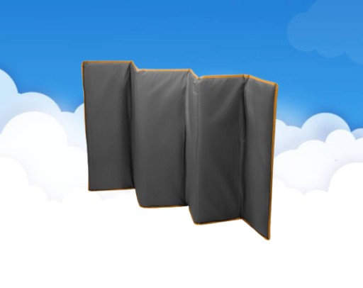 Дорожная кроватка, сложенная на пенопластовом коврике