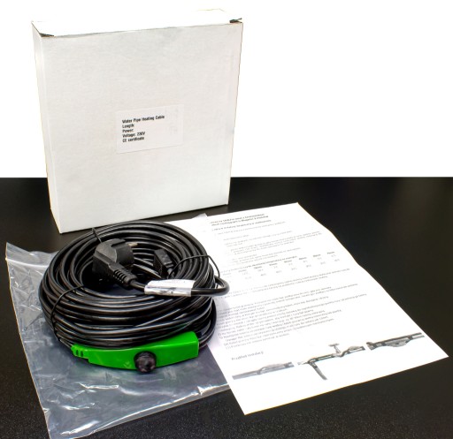Nagrzewa się do temperatury max. 65 stopni. Termostat załącza grzanie przewodu poniżej 3°C a wyłącza powyżej 10°C (temp. rury).