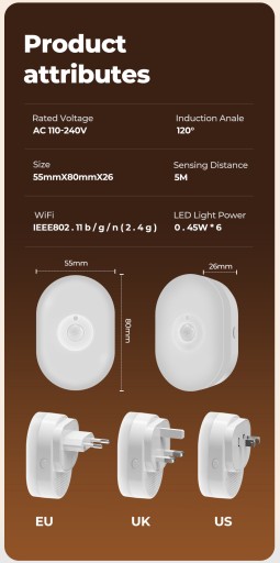 --[Funkcja oświetlenia nocnego WIFI] Automatycznie włącza światło nocne, gdy ludzie przechodzą nocą. Unikaj sytuacji, w której nie widzisz wyraźnie drogi i nie powodujesz szkody dla swojej rodziny