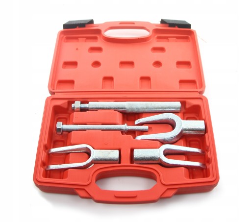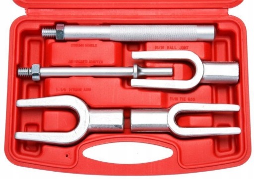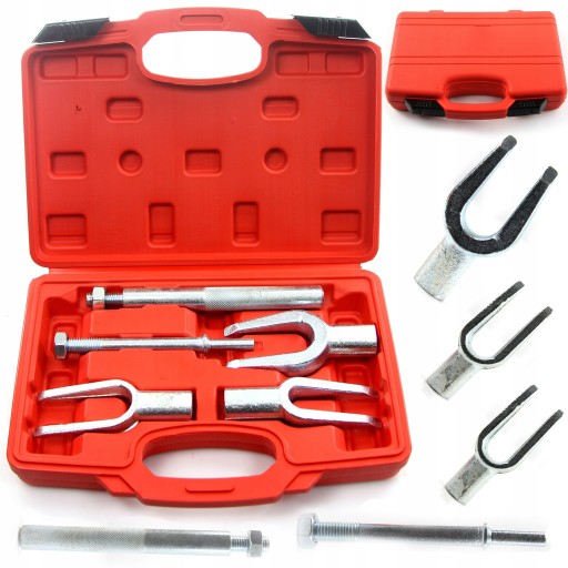 Ściągacze sworzni i drążków kierowniczych 5 części. Przeznaczone do użytku w profesjonalnym serwisie motoryzacyjnym. Służą do udarowego rozłączania drążków kierowniczych i sworzni kulowych.