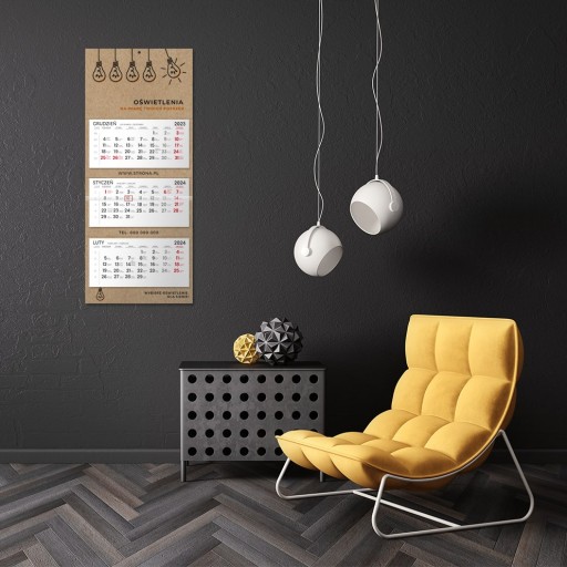 Kalendarz trójdzielny na rok 2024 ścienny kraft