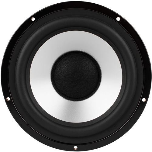 7-calowy głośnik niskotonowy z aluminiową membraną, gumowym zawieszeniem, płaskim pająkiem i specjalną kompozytową osłoną przeciwpyłową.