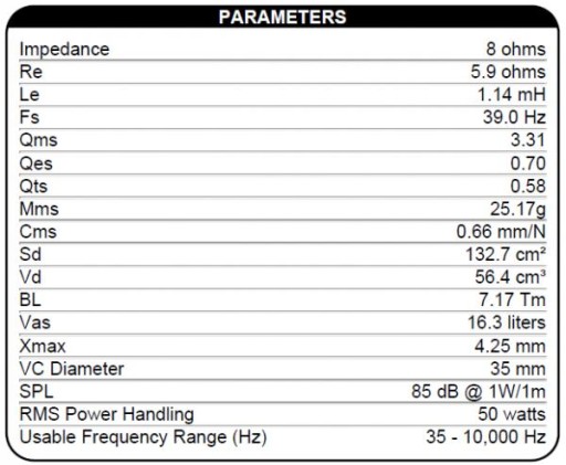 - obudowa bass-reflex: 33 litry dla F3 28 Hz