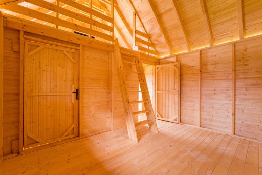 - szkielet całego domku (podłoga, ściany, dach) jest przygotowany pod ocieplenie wełną o grubości 10cm,