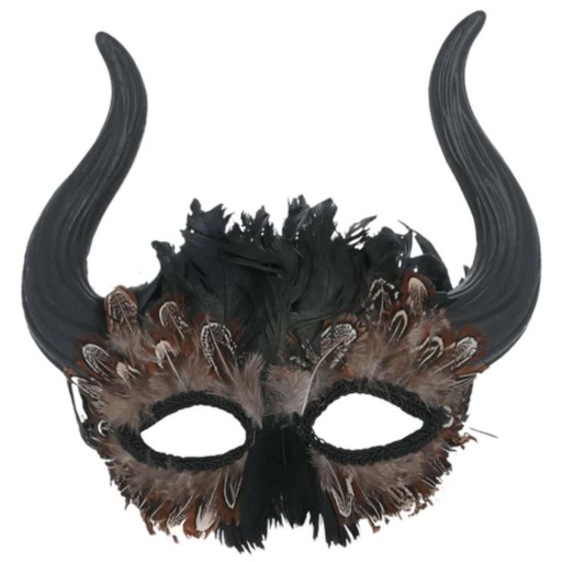 маска С РОГАМИ перья дьявола коричневая ХЭЛЛОУИН
