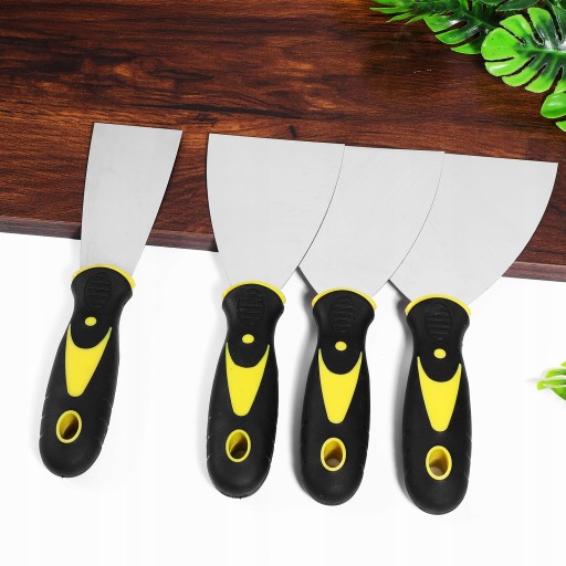 Ten produkt to zestaw szpatułek. Wykonany ze stali nierdzewnej, elastyczny i niełatwy do rdzewienia. Do skrobania farby, usuwania luźnej szpachli, usuwania luźnej farby, naprawy ścian itp. Szybko twórz również gładkie, płaskie, dające się rozprowadzić powierzchnie tapet. Nadaje się do dekoracji wnętrz i profesjonalnej dekoracji.