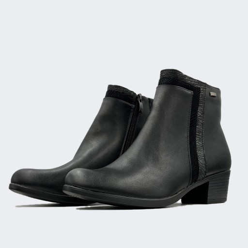 Eleganckie damskie botki na obcasie w klasycznym kolorze czarnym, idealne na wiele okazji. Ich designerski fason łączy w sobie styl z komfortem. Wykonane z wysokiej jakości skóry ekologicznej, gwarantują trwałość i wygodę przez długi czas noszenia. Stabilny, średni obcas dodaje pewności kroku, a zamek błyskawiczny ułatwia szybkie zakładanie. Dodatkowo, miękka podszewka wnosi dodatkowy komfort. Te botki są nie tylko modne, ale także praktyczne i funkcjonalne. Staną się niezawodnym towarzyszem w Twojej garderobie. Dostępne w różnych rozmiarach, abyś mogła znaleźć idealne dopasowanie. Ciesz się niezwykłą elegancją i wygodą.
