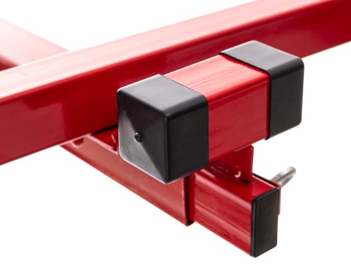 Urządzenie zostało pokrytę powłoką ochronną w kolorze czerwonym. Zastosowany system bloczków, pozwala na płyną i precyzyjna kontrolę podnoszenia. Zastosowana blokada działa automatycznie, co zapobiega przypadkowemu opuszczeniu podnoszonej płyty.