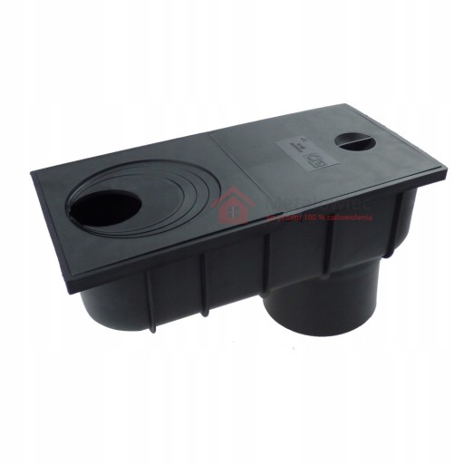 Pokrywa studzienki składa się z pokrywy rynnowej i pokrywy pełnej. Pokrywa rynnowa posiada wytłoczenia do wycięcia dla rur spustowych o średnicy fi 50; fi 80; fi 90;fi 100; fi 110mm. Pokrywa pełna umożliwia rewizję i czyszczenie z zanieczyszczeń. Korpus studzienki podrynnowej posiada odpływ pionowy dla rur kanalizacyjnych o średnicy fi 110 mm.