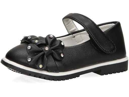 Czarne baleriny z kokardką na rzep Casu 20T3/M
