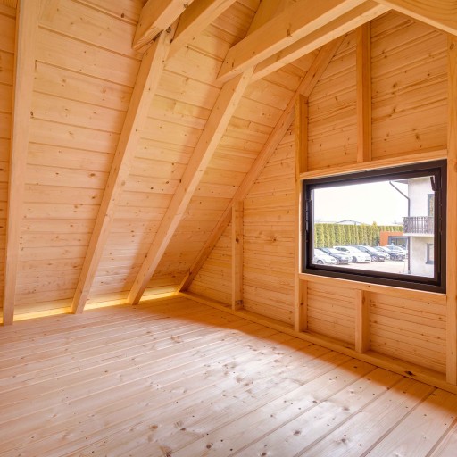 - szkielet całego domku (podłoga, ściany, dach) jest przygotowany pod ocieplenie wełną o grubości 10cm,
