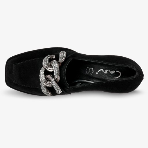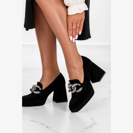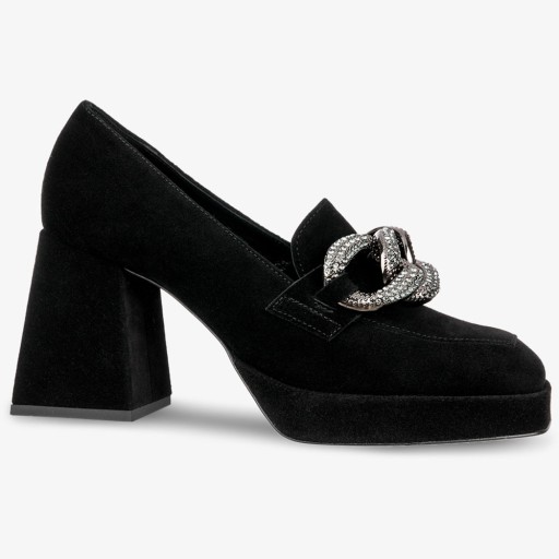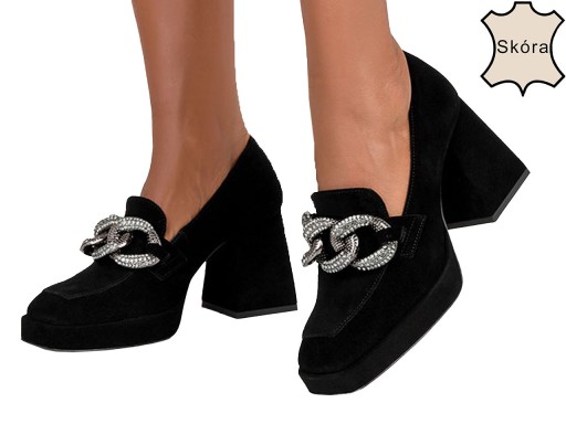 MOKASYNY NA KLOCKU Z OZDOBNYM ŁAŃCUCHEM SKÓRA r 40