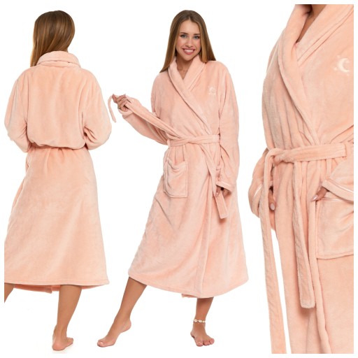 Pragniemy przedstawić Ci nasz nowy długi szlafrok damski z wiązaniem, który dostępny jest w trzech urokliwych kolorach. To niezwykłe ubranie jest idealnym towarzyszem leniwych poranków oraz relaksujących wieczorów. Wykonany z wysokiej jakości poliestru, gwarantuje trwałość, wygodę i komfort przez wiele godzin użytkowania. Nasz długi szlafrok posiada wiele wyjątkowych cech, które docenisz. Długie rękawy i swobodny krój zapewniają pełną swobodę ruchów, natomiast wiązanie w pasie umożliwia regulację i zapewnienie optymalnego dopasowania. Niezależnie od pory roku, ten szlafrok jest idealnym uzupełnieniem Twojej garderoby, zapewniając nie tylko wygodę, ale także stylowy wygląd. Nie do przecenienia są również praktyczne funkcje tego szlafroka. Znajdziesz w nim dwie kieszenie na przodzie, które ułatwią przechowywanie drobnych przedmiotów, takich jak telefon czy pilot do telewizora. Wybierz jeden z trzech eleganckich kolorów - bordowym, brzoskwiniowym lub ecru - i wyraź swoje indywidualne preferencje. Niezależnie od wyboru, każdy kolor doskonale podkreśli Twój wyjątkowy styl i charakter. Ten modny szlafrok będzie doskonale komponować się z Twoimi ulubionymi dodatkami i bielizną, tworząc niepowtarzalne połączenie elegancji i wygody. Nie mogliśmy zapomnieć o najważniejszym - nasz szlafrok został stworzony z myślą o Twoim maksymalnym komforcie. Zrelaksuj się w domowym zaciszu, odkrywając nowy wymiar wypoczynku. Zamów już dziś i ciesz się niepowtarzalnym doświadczeniem, które oferuj