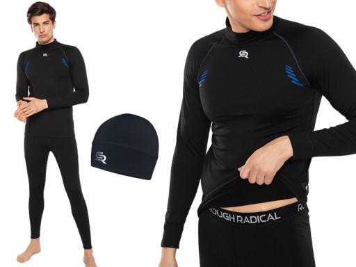 Komplet (koszulka i spodnie) multifunkcyjnej bielizny termoaktywnej, wykonanej z najwyższej jakości komfortowej tkaniny, pomagającej utrzymać stałą temperaturę ciała. Posiada dodatkową ochronę antybakteryjną. Czapka GRATIS!
