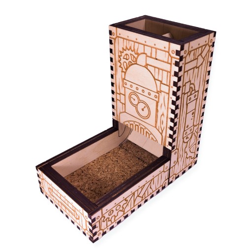 Przedmiotem oferty jest ozdobna wieża do rzutów kośćmi, dedykowana wszystkim fanom gier fabularnych i planszowych. Inspiracją motywu graficznego jest styl steampunkowy. Dice tower wykonano z materiałów pochodzenia naturalnego. Zabudowany podest zapobiega rozsypaniu kości podczas rozgrywki. Wieża jest składana oraz posiada niewielkie rozmiary, co ułatwia transport. Tasowanie kości możliwe jest dzięki zastosowaniu systemu trzpieni.