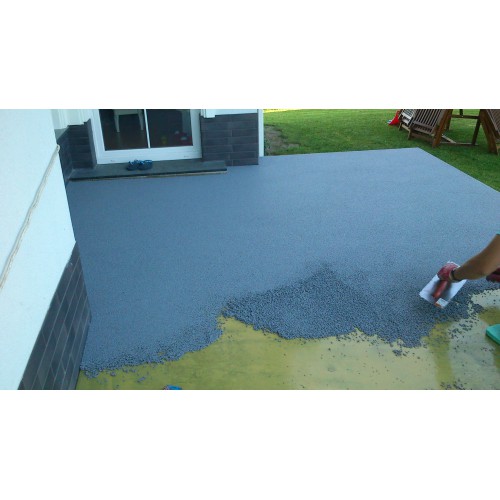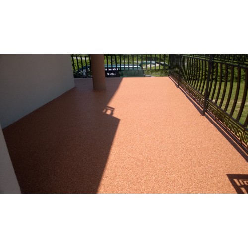 na tak wykonaną podbudowę gruntującą z włóknem możemy wykonać hydroizolację poliuretanową pod kamienny dywan, deskę kompozytową itp. lub wykonać poliuretanową posadzkę dekoracyjną poliuretanową z posypką kolorowymi płatkami lub kruszywem kwarcowym.