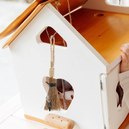 Opis Nasza zawieszka z miotłą czarownicy jest wykonana z gałęzi, materiałów metalowych i praktyczna, jest wygodna i bezpieczna dla dzieci. Ta zawieszka z urokiem miotły jest ładną ozdobą. Nadaje się do dekoracji na Halloween, a także na torbach lub breloczkach.