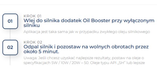 - Aby w pełni wykorzystać właściwości Oil Booster, najlepiej przed dodaniem preparatu użyj TEC 2000 Engine Flush