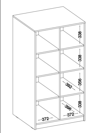 - Tył szafki: płyta HDF 3mm w kolorze płyty