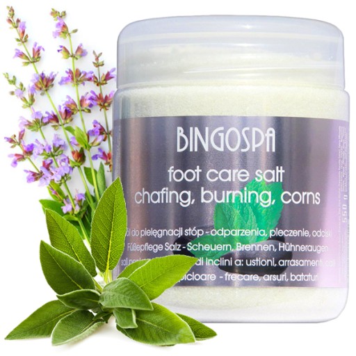 Sól BINGOSPA do pielęgnacji stóp ze skłonnościami do pieczenia i odparzeń zawiera ekstrakty z szałwii, melisy i rumianku, które zmniejszają skłonność do pocenia, przywracają naturalne pH skóry stóp oraz delikatnie ją nawilżają.