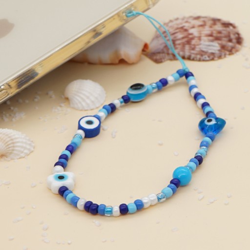 Брелоки для телефона Эстетический шнурок с бусинами Голубой глаз