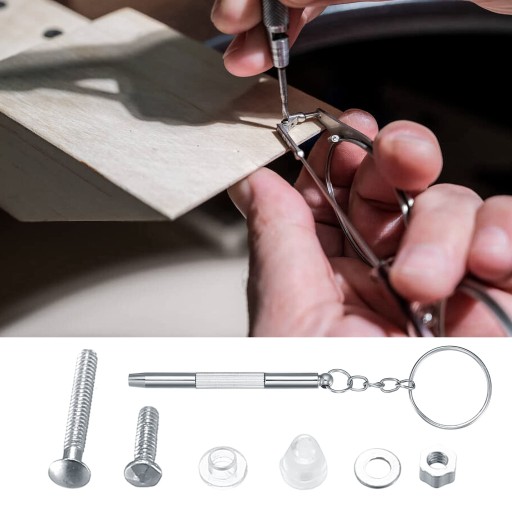 - 1 schowek. Wystarczające narzędzia do naprawy i części zamienne do samodzielnej naprawy okularów