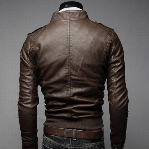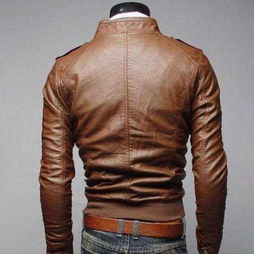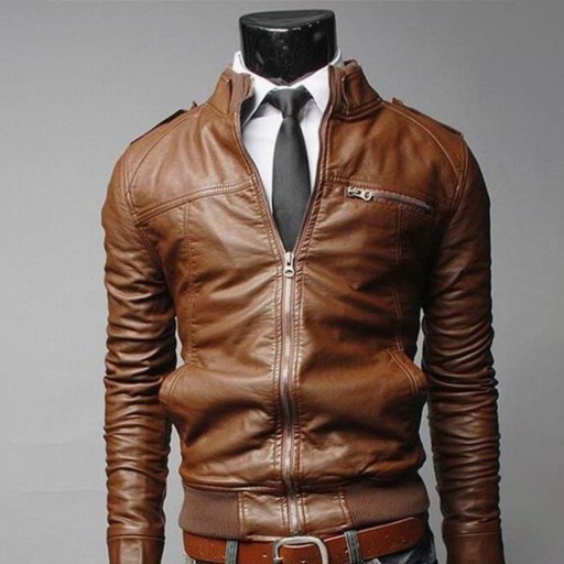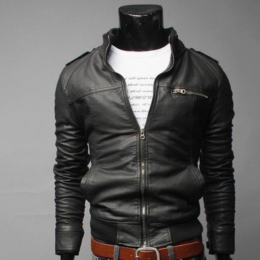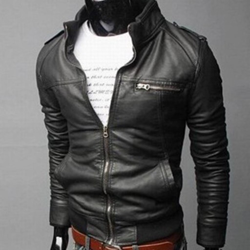 Solid Color Zipper Closure Men Jacket Faux Leather Stand Collar Side Pockets Motorcycle Windbreaker Male Clothing