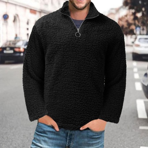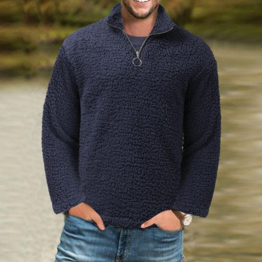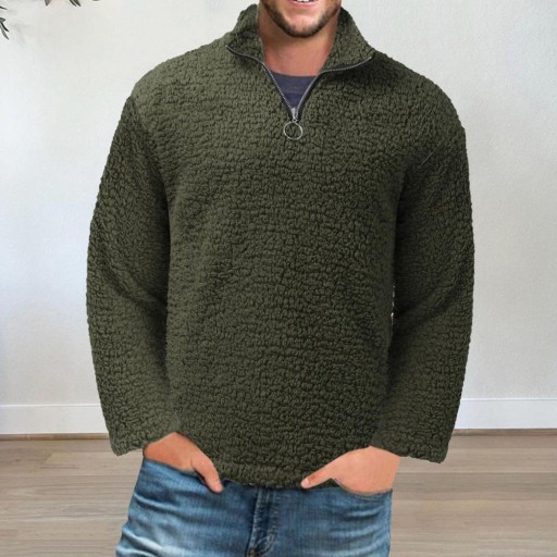 Men Jacket Solid Half Zipper Stand Collar Coldproof Autumn Winter Plush Loose Fit Sweatshirt Coat Streetwear Autumn Clothes Male