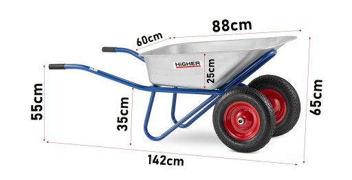 Taczka dwukołowa HIGHER®️ 130L mocna 210kg budowlana ogrodowa