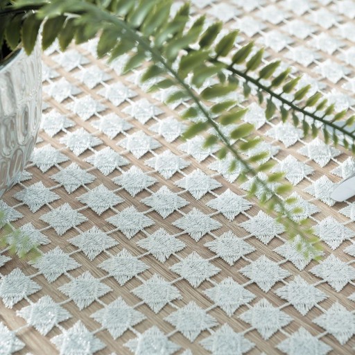 Materiał tkaniny o strukturze stworzonej z małych kwadracików oraz delikatny błysk to cechy, które zamienią każdą aranżację wnętrza w niebanalną i unikalną. Tkanina gipiurowa dzięki, swojej uniwersalności może posłużyć jako dekoracja okna w postaci firany lub zasłony jak również możesz ją zastosować jako elegancki obrus. Materiał dekoracji posiada lurex, co sprawia, że jest niezwykle elastyczny, lejący, świetnie się układa, i nie wymaga prasowania.