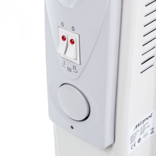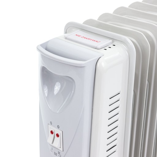 Dzięki manualnemu termostatowi grzejnika elektrycznego moc grzania może być regulowana 3-poziomowo: 800W, 1200W lub 2000W. Oprócz podstawowego zabezpieczenia przed przegrzaniem szczególnym atutem kaloryfera elektrycznego na kółkach jest funkcja automatycznie wyłączająca w przypadku przewrócenia. 9-żebrowy grzejnik olejowy jest testowany ciśnieniowo.