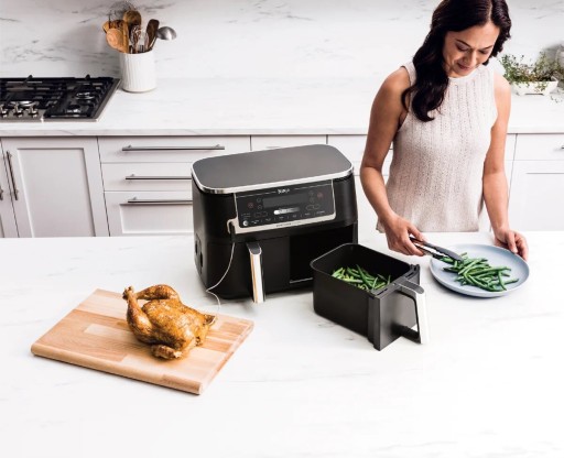 Postaw na funkcjonalne i praktyczne rozwiązania i poznaj frytkownicę beztłuszczową NINJA AF451EU XXL z dwoma miejscami do gotowania. Każdy z nas lubi frytki i idealnie wysmażone mięso. Teraz możesz mieć to, co lubisz - w zdrowszej wersji bez tłuszczu! Sprawdź i się przekonaj!