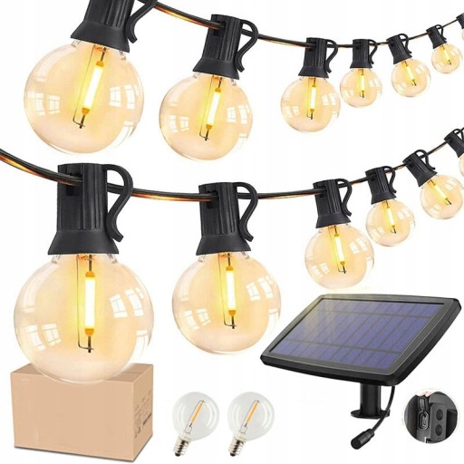 Solarna lampa łańcuchowa zewnętrzna G40 ma 14,5 m długości, 50 sztuk żarówek kulowych.Światła zasilane są energią słoneczną.Żarówki LED o wysokiej wydajności oszczędzają ponad 90% energii w porównaniu z żarówkami.Słoneczne zewnętrzne oświetlenie łańcuchowe automatycznie włącza się w nocy i wyłącza w ciągu dnia.Ładowanie USB może być uzupełnieniem, gdy w ciągu dnia nie ma wystarczającej ilości światła słonecznego.