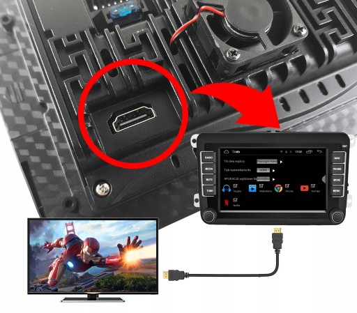 Radio pozwala na podłączenie innego monitora zewnętrznego kablem HDMI, za pomocą, którego w łatwy sposób możesz wyświetlić innym pasażerom materiały wideo np. filmy, bajki, nagrania