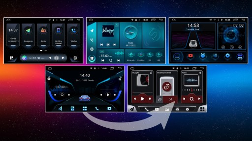 Najnowsza wersja Androida zapewnia aż 18 opcji wyglądu menu do samodzielnego dostosowania. Możliwość zmiany designu w dowolnym momencie w zależności od Twojego nastroju! Dopasuj wygląd interfejsu do wnętrza swojego samochodu.