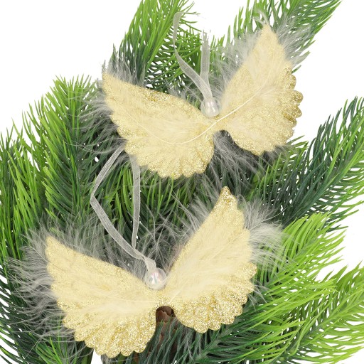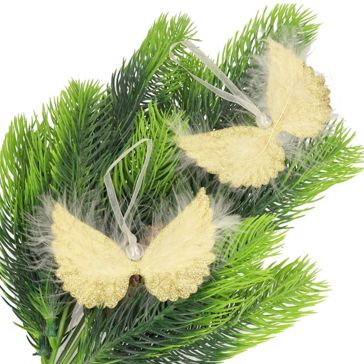 - Nasze skrzydełka w połączeniu z białymi bombkami, białymi kwiatami i zawieszkami zagwarantują spektakularny efekt naszej dekoracji.
